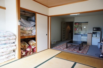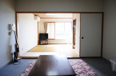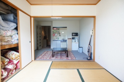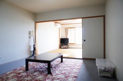 7帖の和室。 押入れ収納があるお部屋です。 先ほどのダイニングキッチンと繋がっています。 約1帖分の板間があり、実際には8帖くらいの空間となります。 |