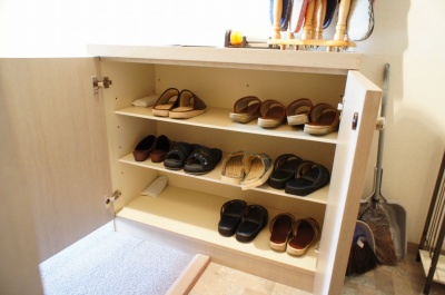 玄関スペース。 左右にクローゼット、シューズボックスがあります。 |