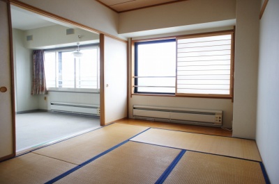 6帖和室。 先ほどのリビングダイニングと繋がっているお部屋です。 押入れ収納と床の間がございます。 |