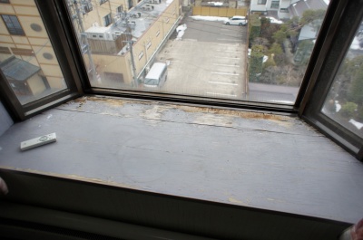 南西向きの出窓にも、結露が原因と思わしき傷みがあります。 |