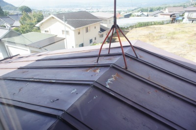 屋根の様子。 サビが浮いてきており、再塗装が必要な状態です。 |