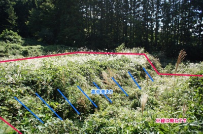 農地の東側の様子。 農地は段状の高低差があります。 |