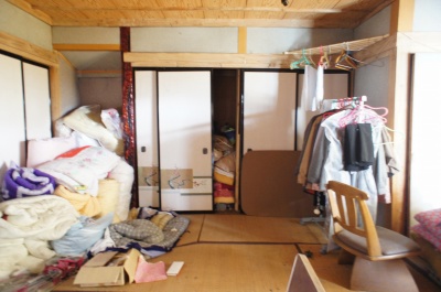 4.5帖納戸。 ここも野生動物が侵入したのではないかと思わしき状態です。 |