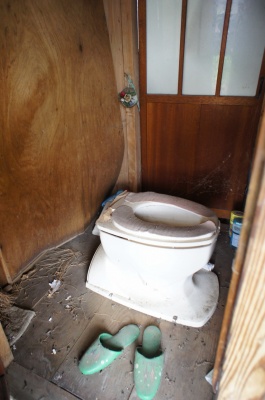 玄関横にトイレがあります。 現状汲取式で、下水道は敷地内の南東端側に引き込みあります。 |