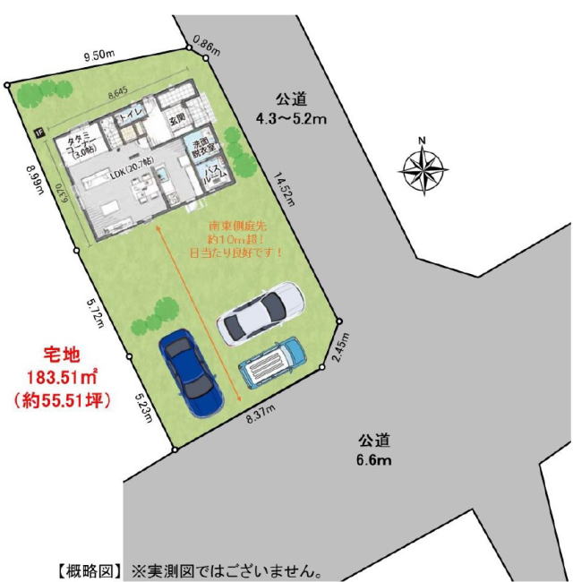 戸建て住宅+駐車場としてちょうどいい面積です。