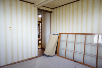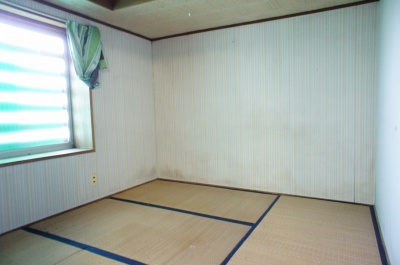 玄関からすぐの4.5帖和室。 こちらも床が傷んでおり、歩くと凹みます。 |