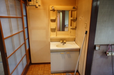 玄関横に洗面台がありますが、未使用期間が長いため、水道管そのものを含めて利用可否は不明です。 |