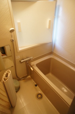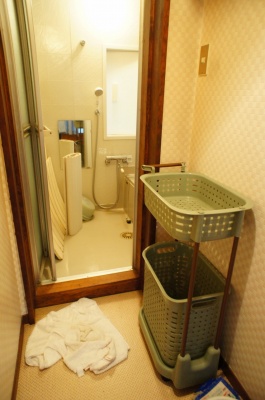 浴室。 古民家とは打って変わって、現代的な浴室になっています。 給湯設備は灯油ボイラーですが、故障していると思われます。 |