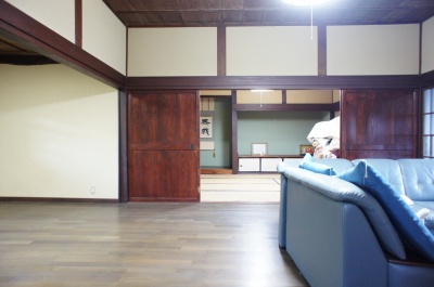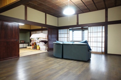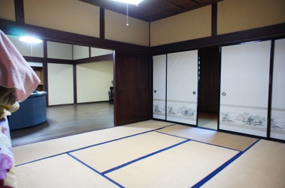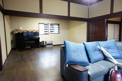 20帖の洋室。 広々とした空間です。 柱の傾きや一部ふすまが動かないなど、雪の重みによる全体的な老朽化と思われるところがあります。 |