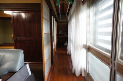 西向きの広縁。 20帖洋室、10帖和室と繋がっており、突き当りには押入れ収納もあります。 |