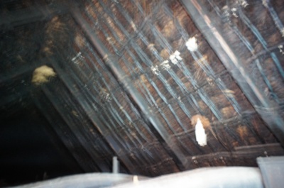 北側の軒の様子。 冬季のメンテナンス不足により屋根が破損しています。 |