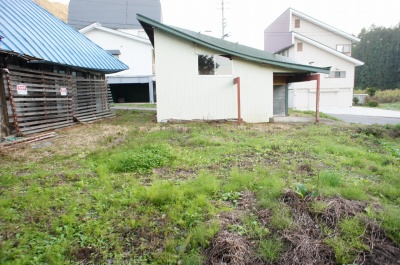 敷地内の物置。 もともと2階建てだった倉庫を、屋根の雪下ろしが大変だったため平屋化しました(売主様談) 一見するとコンクリートスロープの部分も敷地内に見えますが、他人の敷地です。 |