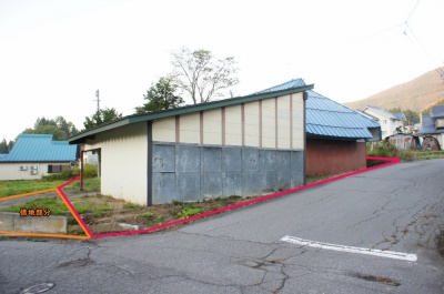 車庫(カーポート的)部分と倉庫部分に分かれており、車庫部分の屋根は積雪による破損があります。