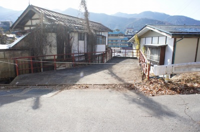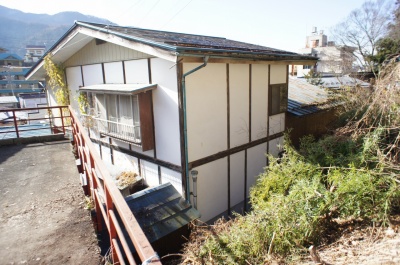 周囲は山間の温泉旅館街で敷地と道路に高低差があるため、前面道路からは階段で出入りします。