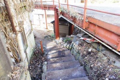 敷地と道路に高低差があるため、前面道路からは階段で出入りします。 |