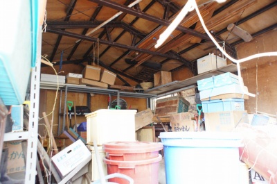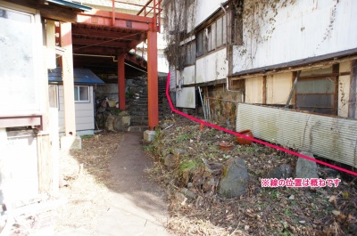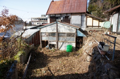 敷地内にも高低差があります。 高低差の下段には倉庫があります(おそらく未登記)。 倉庫も老朽化が進んでいます。 |