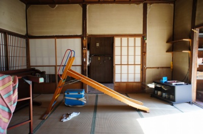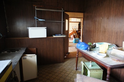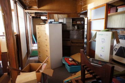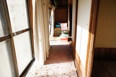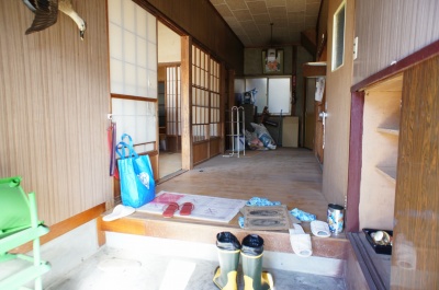 玄関を入ったところ。 固定資産税課税台帳によると明治25年築、昭和44年築、昭和60年築 と記録されていますが、詳細は不明です。 空き家になった時期は2009年で、以後放置されています。 老朽化が進んでいます。 |