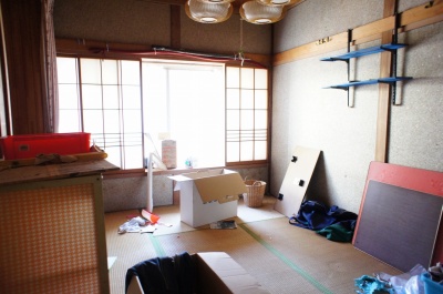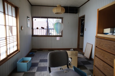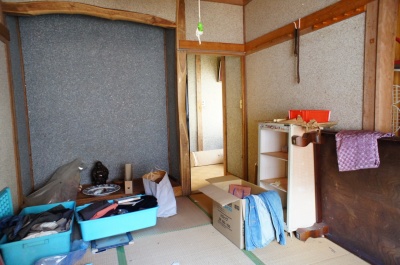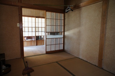 廊下を挟んだ6帖和室。 こちらは壁の素材が土壁ではないので、昭和44年築のものではないかと思われます(詳細は不明です)。 |