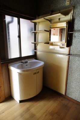 廊下に洗面台があります。 再利用可否は不明です。 |