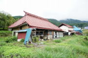 山ノ内町と木島平村の境目の山あいにあり、周囲の地形は山に面した約20件ほどの小さな集落です。当物件は集落の一番奥で、山の斜面に面した段状の土地形状。建物からは木島平方面のほのぼのとした景色が見えます。土地は9筆あり、宅地、田、原野、山林です。建物は雪により半壊しています。