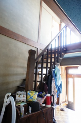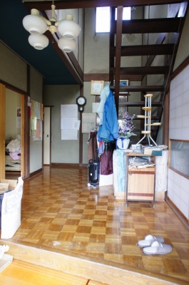 玄関の様子。 建物は昭和51年築の木造2階建てです。 吹き抜けで開放感のある玄関が特徴。 空き家になった時期は2015年ごろで、全体的に築年月相応の経年変化があります。 |