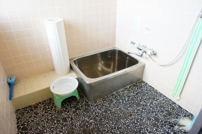 浴室。 シャワー水栓から水漏れをしており、修理が必要です。 給湯器は電気給湯器でキッチンと共用になっています。 写真写りが良いですが、実際にはリフォーム前提と御検討下さい。 弊社経験上の最低限のリフォーム見立て 浴室リフォーム 約250万円前後 |